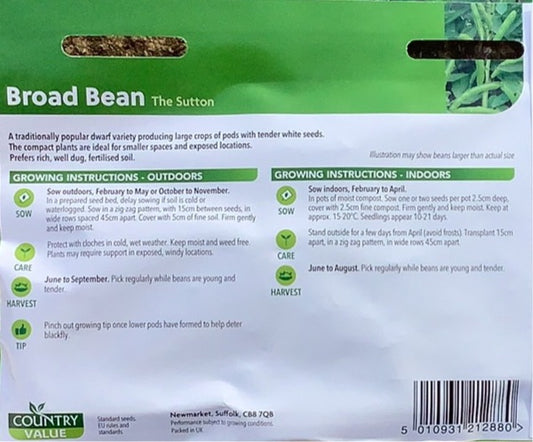 Broad Bean Dwarf The Sutton Mr.Fothergills