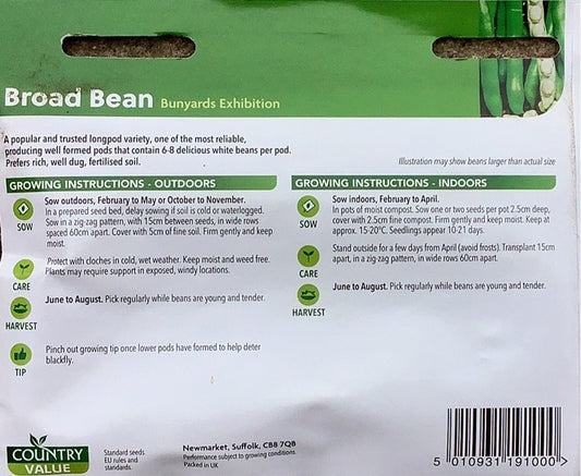 Bunyards Exhibition Broad Bean Seeds, Country Value