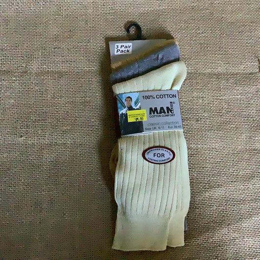 Man Basic, 100% Cotton Socks-3 Pair Pack (UK 6-11)