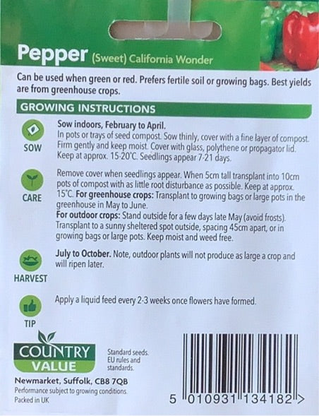 (Sweet) California Wonder Pepper Seeds, Country Value