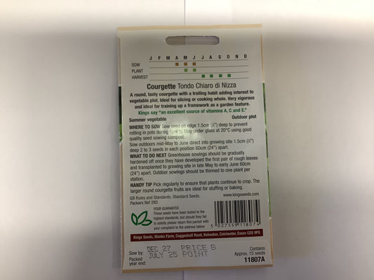 Kings Seeds Courgette Tondo Chiaro Di Nizza