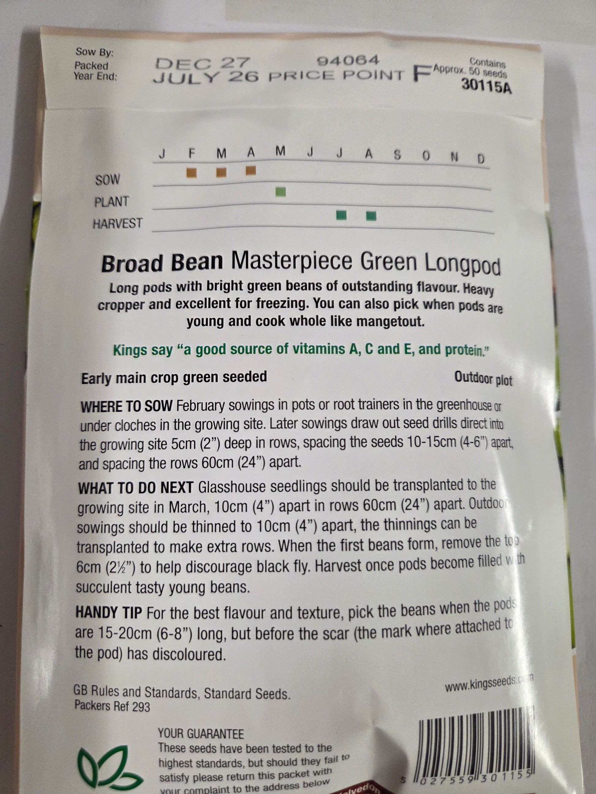Kings Seeds Broadbean Masterpiece Green Longpod