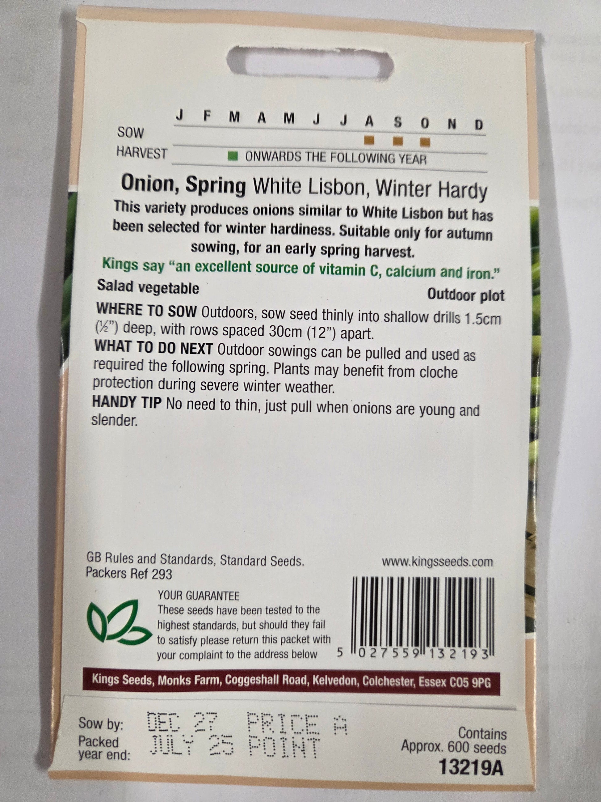 Kings Seeds Spring Onion White Lisbon Winter Hardy